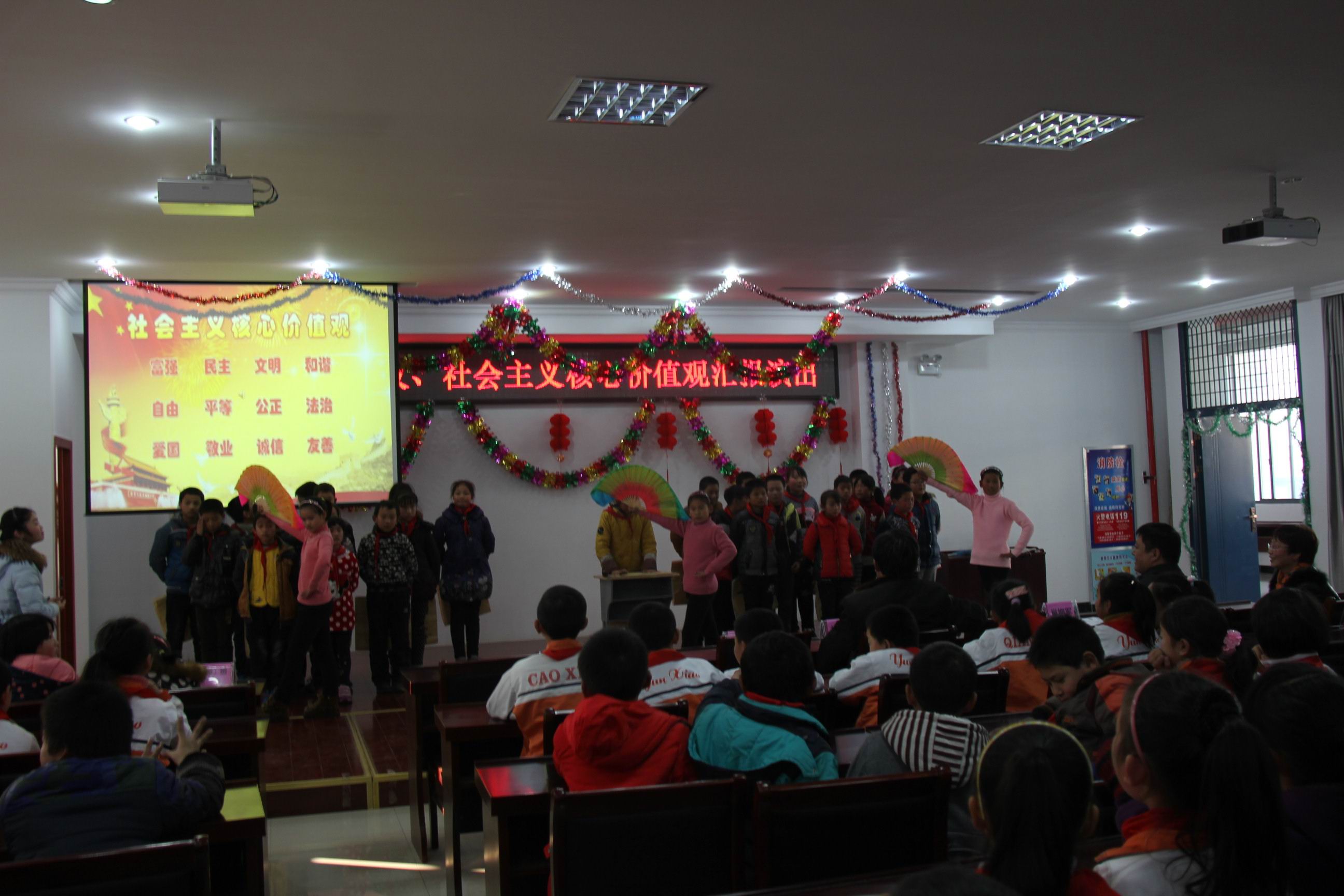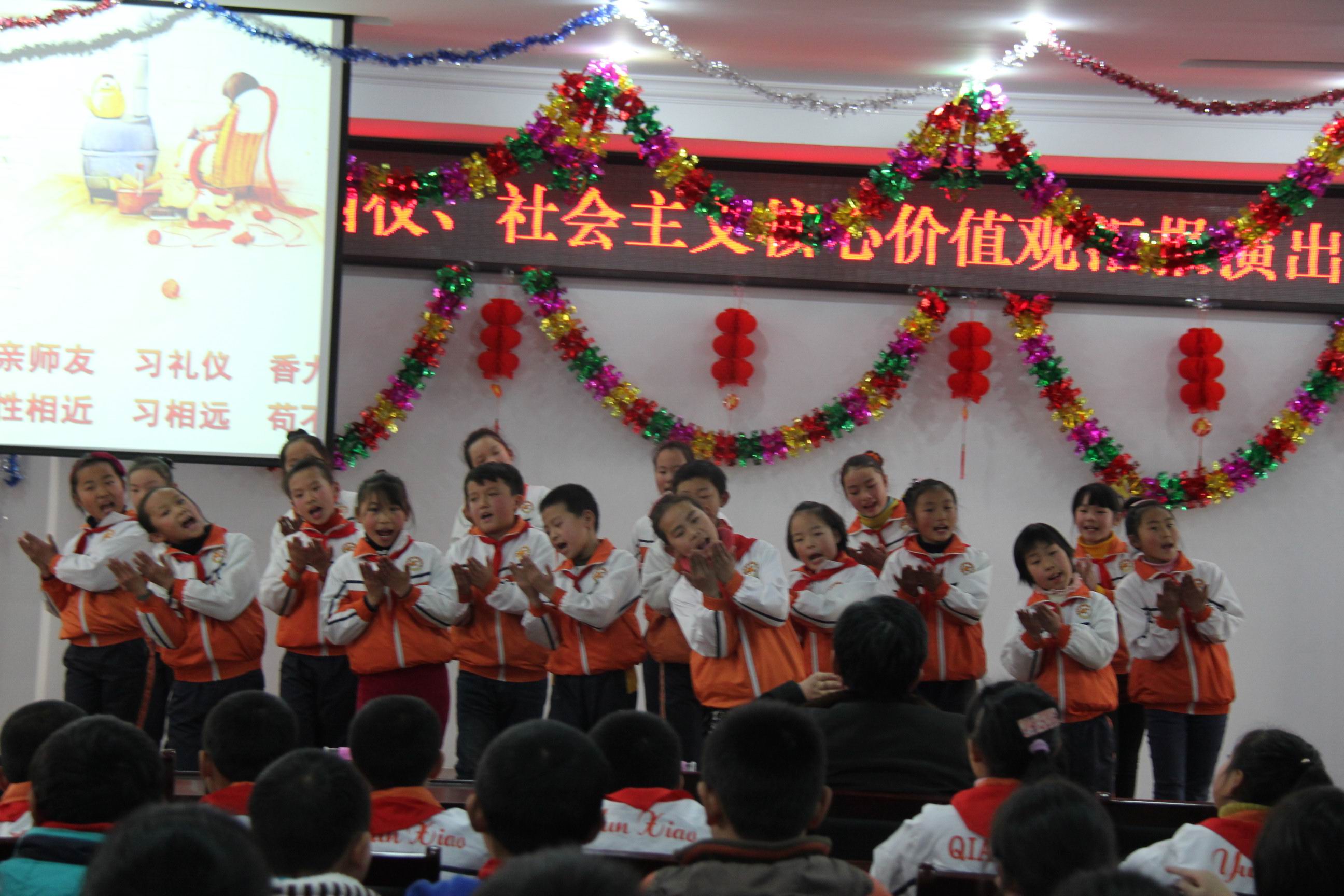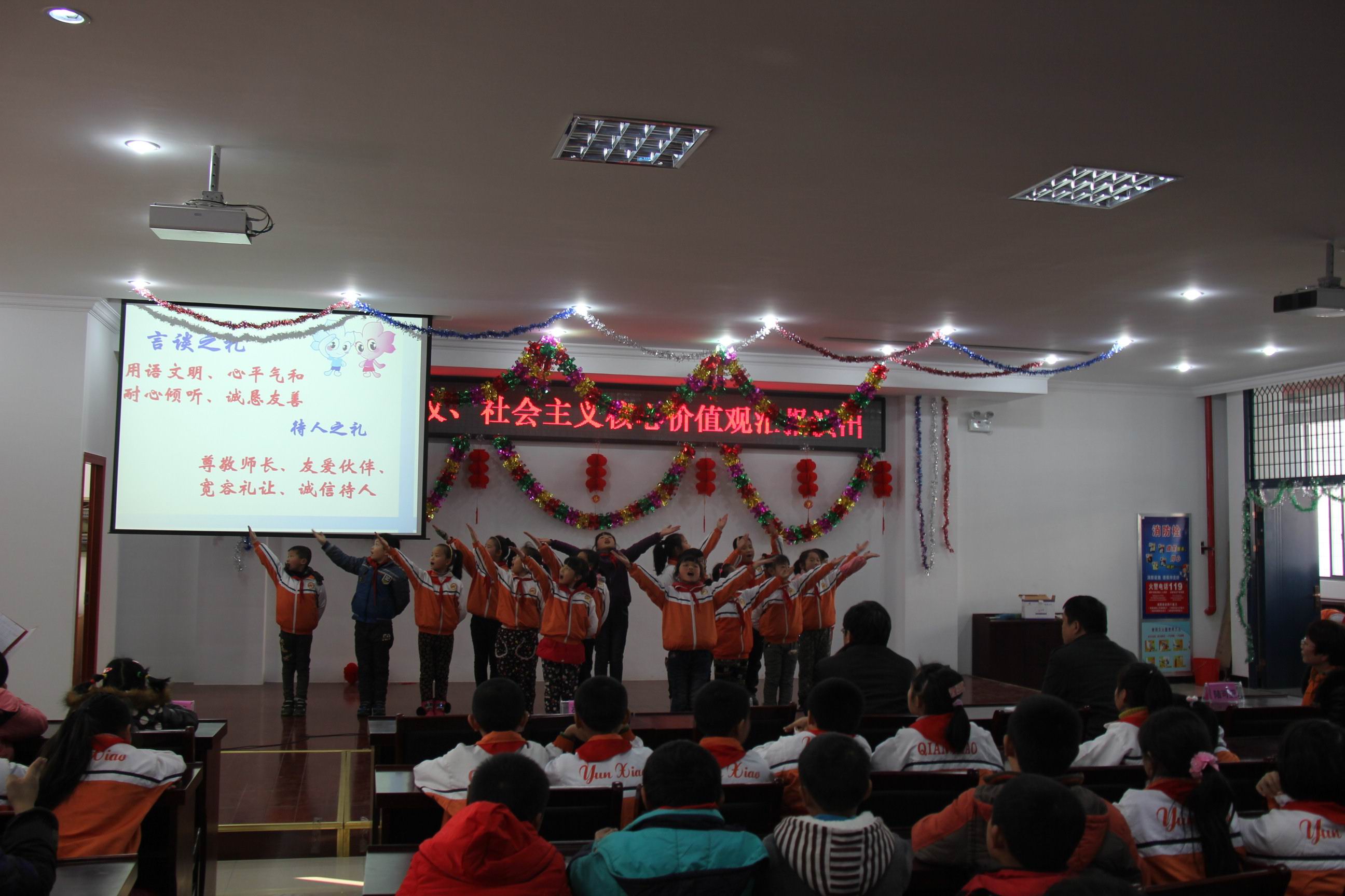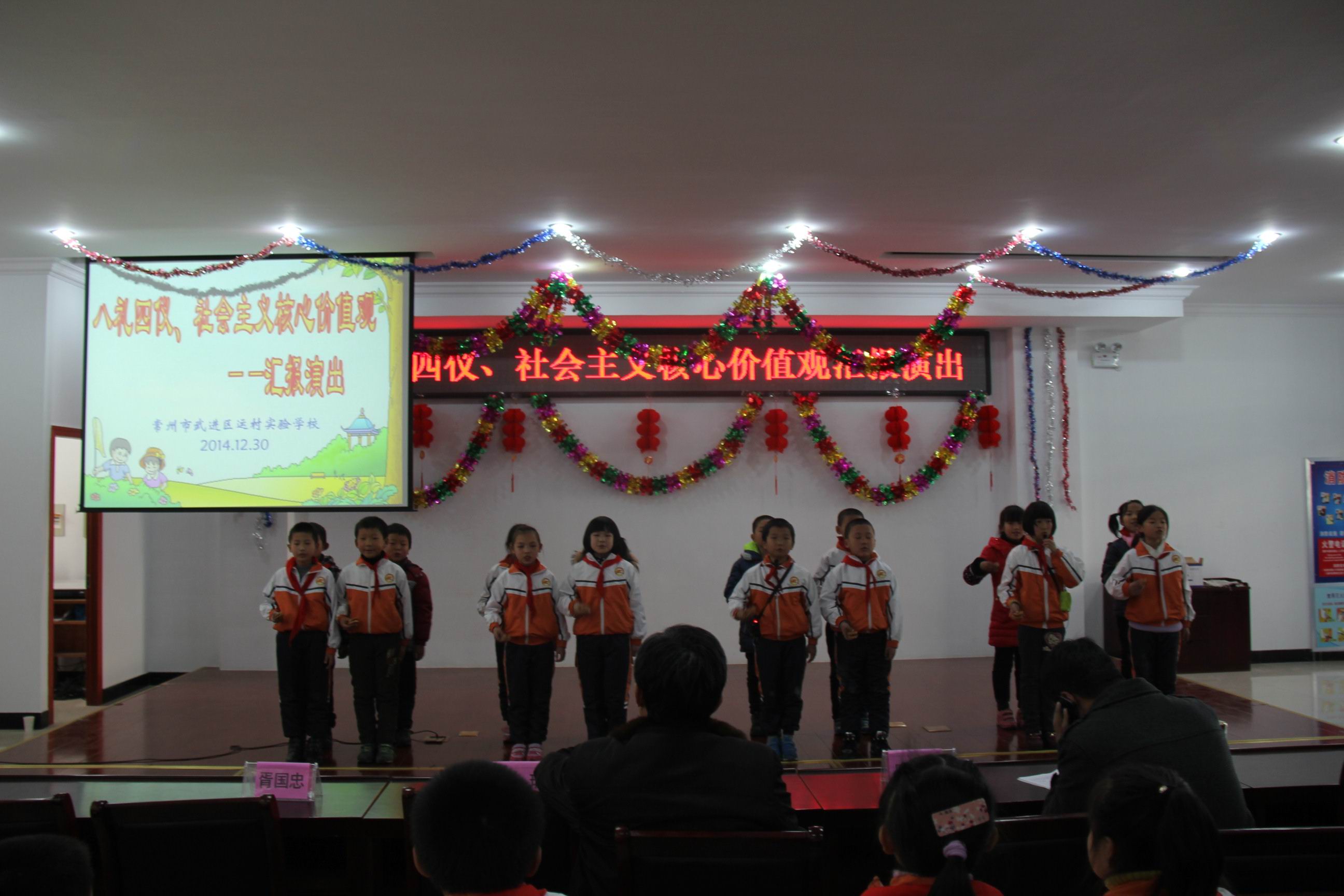 有一支歌,我们天天都在吟唱;有一支歌,就像鲜花四季开放;这支歌的名字叫礼仪……从今年春季学期开始。江苏在全省推行“八礼四仪”规范,开展文明礼仪养成教育。我校也在11月到12月间开展了八礼四仪及社会主义核心价值观主题活动。继四(1)中队的十岁成长礼之后,近日,运村实验小学部在综合楼四楼报告厅举行了八礼四仪、社会主义核心价值观活动汇报演出,学校杨波校长、巢拥军副校长、陆可亚副校长、全体班主任及300多名学生参加了此次活动。 为了迎接本次活动,各班都精心准备了节目,12个节目形式多样,有快板、表演唱、诵读、舞蹈、故事等,紧紧围绕主题,向大家汇报了近阶段学习“八礼四仪”及“社会主义核心价值观”的心得体会。三(1)班的表演唱《讲文明、学礼仪》有说、有唱、有表演,贴近学生生活实际;三(2)班和四(3)班的快板把八礼四仪的具体内容解读得朗朗上口,熟记于心;四(1)班手语舞《感恩的心》,表达了孩子们感恩父母、同伴、老师、社会的心声;四(2)班的表演唱《三字经》形式独特,博得了观众的阵阵掌声;六(1)班的故事,通过学生身边的事告诉大家礼仪的重要性;五(3)班的歌曲《社会主义核心价值观之歌》,全班学生集体参与,演唱声音响亮整齐,舞蹈表演优美有味,书法展示学生才艺,把整场活动推向了高潮。 最后,杨波校长为本次活动作了总结,他说,活动开展得很成功,同学们的表演很精彩,希望同学们不仅是把八礼四仪牢记于心,更要化成平时的实际行动,真正做一名有道德、懂礼貌的文明人。 “少年智则国智,少年富则国富,少年强则国强。”通过两个月的系列活动,相信每一位同学都会认真学习和落实“八礼四仪”的具体要求,牢记社会主义核心价值观核心词,强化文明礼仪体验,从小养成良好的品格和行为习惯,争做文明好少年。 (运村实验供稿 撰稿:鲁晓丽 摄影:薛小平 审核:巢拥军)
