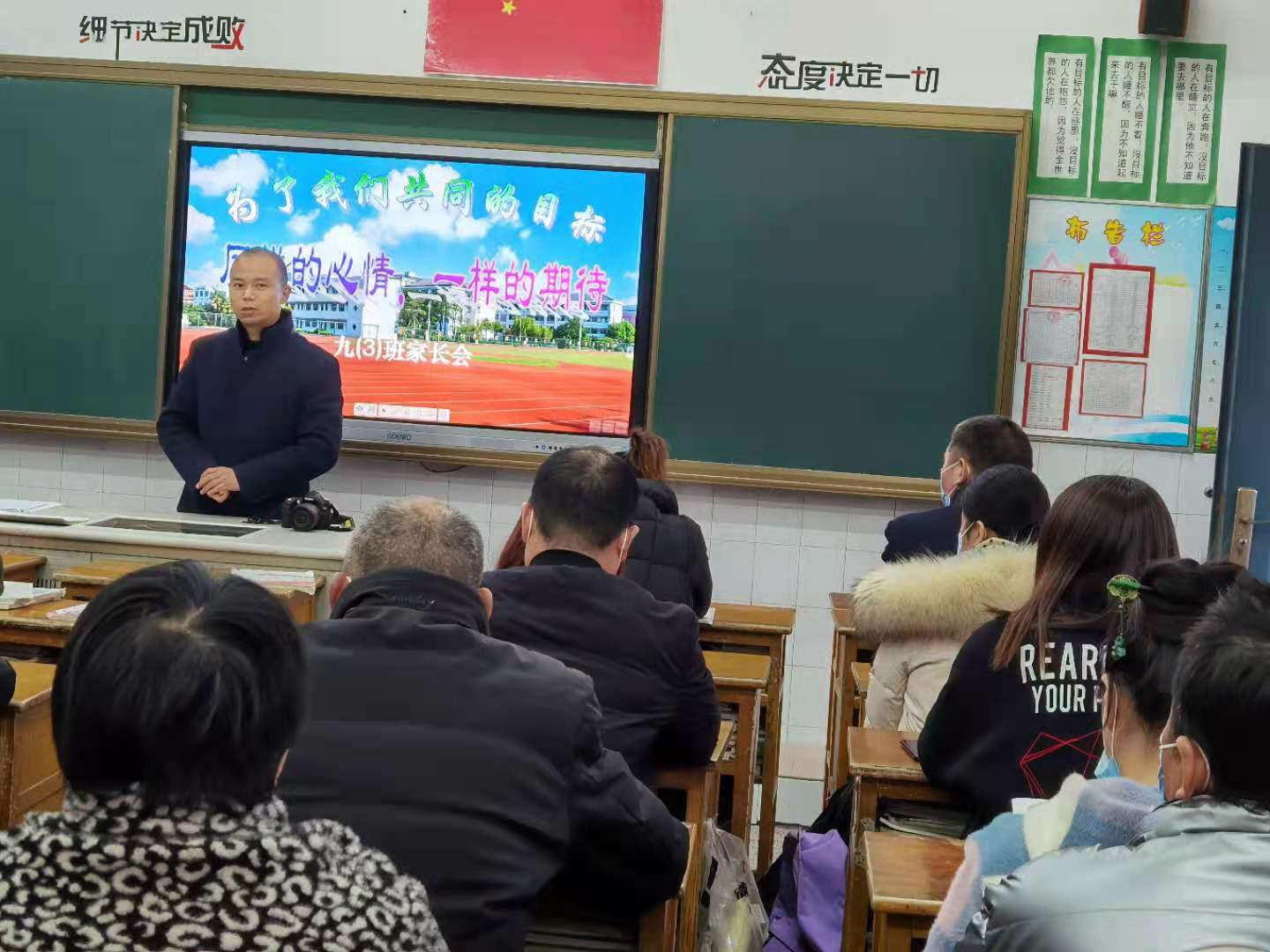 运村实验学校顺利举办九年级家长会 12月8日下午,运村实验学校顺利举行了九年级家长会。会议由九年级组长唐燕云主持,本次家长会分两阶段举行。 第一阶段先听专家讲座。本次家长会邀请了武进区教育系统家长学校总校的遥观初中刘亚勤副校长为家长作题为《悦纳孩子,初三不焦虑》的讲座。 刘校长通过列举身边的真实案例,分析了九年级学生家长焦虑的主要原因、剖析了九年级学生两大焦点问题(叛逆问题和手机问题)及叛逆孩子家长的心理及表现,并给予消除焦虑的有效建议。刘校长的讲座思路清晰,生动形象,充满智慧,可谓句句在理,讲到了家长的心坎里,纠正了家长的错误教育理念。家长们受益匪浅,对家庭教育有了新的认识,增强了家庭教育的实践性,是一节非常高效的家长课堂。 接着运村实验学校薛宏林副校长介绍了学校当前的整体情况、取得的荣誉及九年级良好的发展势头,同时也真诚地给家长提了几点建议:要有良好的亲子关系;及早定好中考目标;相信学校相信老师,并积极与教师沟通等。 家长会第二阶段在各班教室举行。各班主任会前做了精心准备,具体介绍了本学期以来班级的情况以及九年级的重要性,根据本班学情与家长一起探讨学生的学习问题和品格养成问题。中考科目的任课老师也积极到班级与家长进行互动交流,提出了家校合育良方。 本次家长课堂为家长如何开展家庭教育打开了新思路。