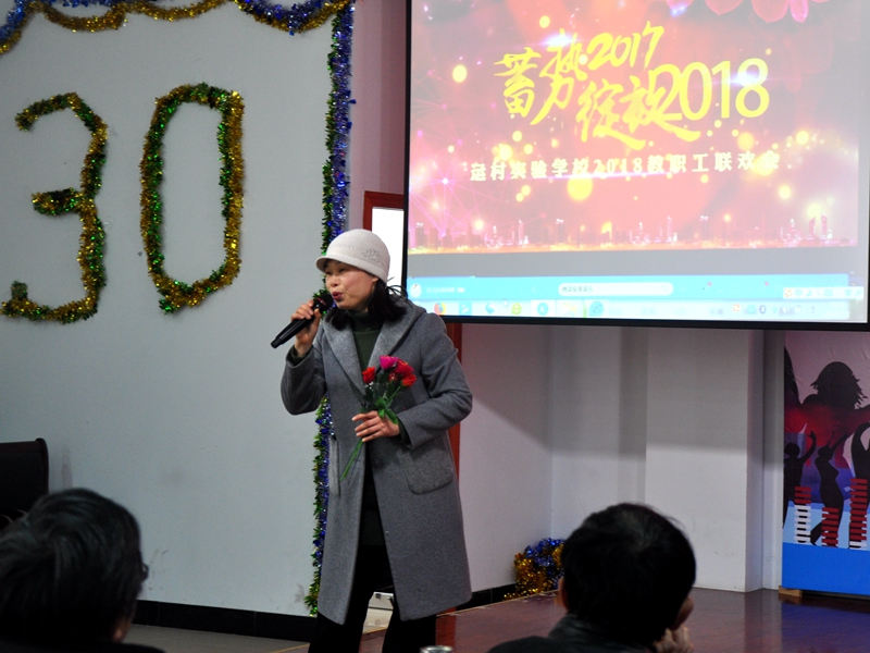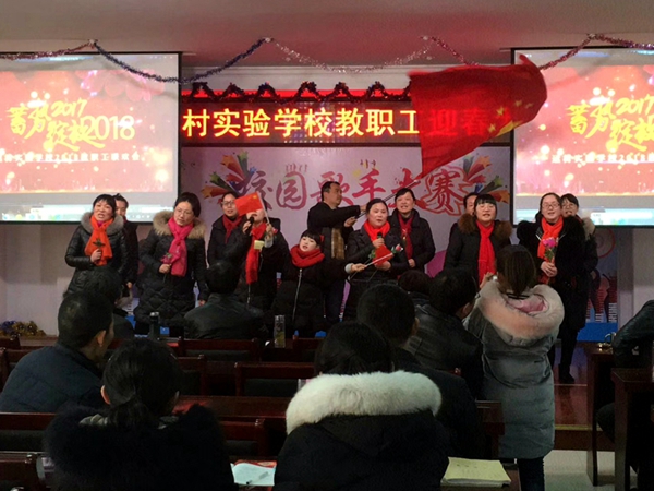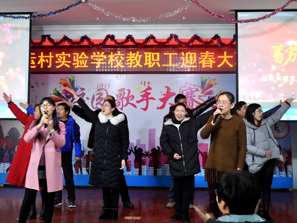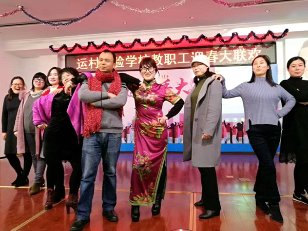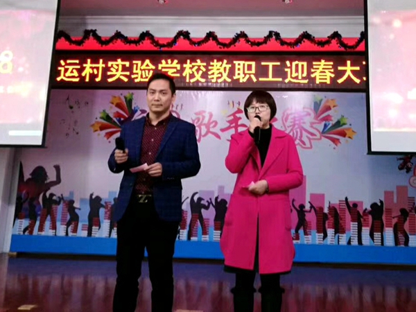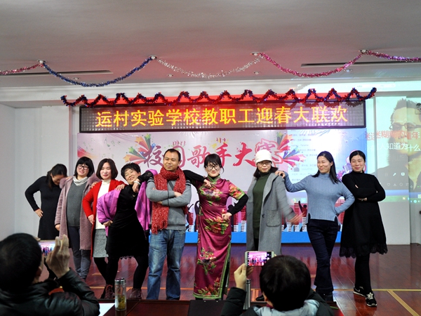 运村实验举行教职工迎新春大联欢活动 幸福满满的2017年已经过去,我们即将满怀激情告别鸡年,收获狗年的成功与喜悦。2018年2月2日下午,运村实验学校首届教职工迎新春大联欢活动在学校四楼报告厅举行。 开场舞蹈《C哩C哩》直接出场,低年级组的几位舞者,带来了热情、动感、火辣的舞蹈,一下子就让活动现场升温不少;接下来,中年级组的阙晓英老师给大家带来了一首优美舒缓的歌曲《流年》;初一年级组的诗朗诵《没有共产党就没有新中国》和高年级组的小合唱《大中国》,都表达了感谢祖国,感谢党的美好情感;中年级组和初三年级组胡琴娟、唐燕云等人带来一组歌曲串烧,勾起了老师们的无限回忆;王建国老师演唱的歌曲《涛声依旧》和徐曙光、顾桂萍老师带来的情歌对唱《过河》,都博得了大家的阵阵掌声;学校巢拥军副校长和秦建明老师,他们给我们深情演绎童话大王郑渊洁的作品《父与子》,带给大家许多感动和思考;初三年级组全体组员表演的猫步秀,充分展现了运村实验老师们的朝气与青春活力;最后,初二年级组唐益锋老师的独唱《恭喜发财》和小学部行政组的帅哥美女给大家展示的热情洋溢的舞蹈《吉祥》,祝愿大家在新的一年里吉祥如意,将联欢会推向了高潮!当然,其中还有有奖竞猜、游戏环节穿插点缀,轻松、欢笑、愉悦洋溢在每一位教师的脸上! 跨入2018,我们又收获了一份快乐;再见2017,我们又开始了新的期盼。翻过昨天,我们续写新的辉煌;展望明天,运村实验策马扬鞭!新的一年里,运村实验全体教职工必将团结一心,共同创造运村实验学校更加美好的明天!