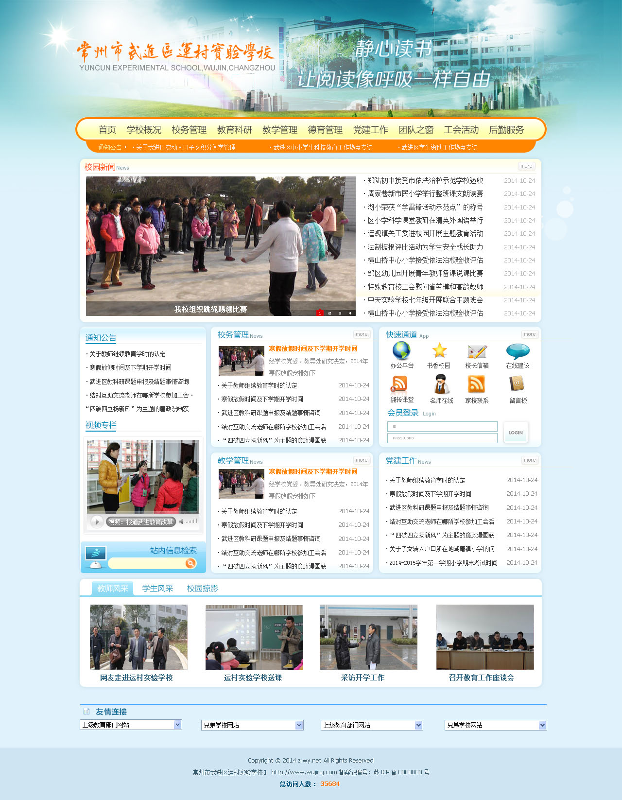 运村实验举行六年级学生家长会 为进一步加强学校和家庭之间的交流沟通,为学生步入初中学习生活打下良好的基础,运村实验学校于11月24日下午举行了六年级学生家长会。 下午两点多,100多名家长就来到学校报告厅参加会议。首先家长们听取了学校胥静老师关于积分制入学政策的解读。2014年秋季起,武进区实行流动人口子女积分入学管理制度。今年小学一年级流动人口就是通过积分制入学的,以后可能逐步推广到六年级升初一。通过胥老师的,家长们了解了积分制入学的四个必要条件,为以后孩子的入学问题早早做好准备。 接着学校杨波校长作了题为《做一个称职的家长》讲座。杨校长首先从负责任的家长,该怎么做、提高对家庭教育的认识等三方面阐述了家长教育的重要性;接着针对六年级学生的特点让家长了解了六年级和初中学生的学习状况、小学生与初中生学习方面的差异;最后杨校长通过具体的案例分析指导家长如何正确对待“小升初” “择校”问题。 会后,家长们和六年级班主任老师及各位任课教师就学生特点、家校教育等方面进行了真诚互动的交流,共同探讨孩子的教育问题。交流中,老师们认真听取了家长对学校工作提出的建议和要求,并做了详细的记录。 本次家长会的召开,不仅拉近了学校与家长间的距离,而且融洽了教师与家长们的关系,同时对学校和学生的发展起到了良好的促进作用,形成了学校、教师、家庭的教育合力。