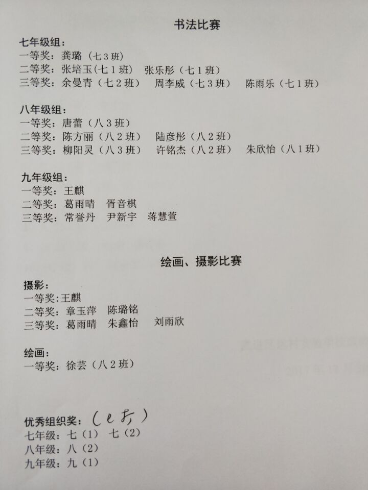 艺术节书法、绘画、摄影比赛获奖名单2018.1