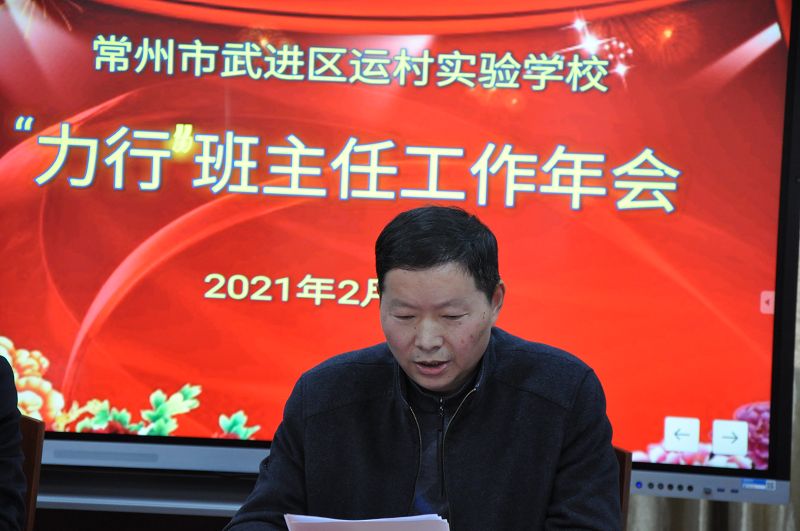 运实举行“力行”班主任工作年会 为进一步提高班主任业务素质,强化班级管理,提高班主任管理水平,加强班主任工作经验交流,互相学习,共同提高。2月20日下午,运村实验学校在尚德楼三楼党员政治生活馆召开了“力行”班主任工作年会。本次会议由周敏老师主持,董皓校长、薛宏林副校长、德育处及全体班主任参加了本次会议。本次大会共有四项议程。 议程一:颁奖仪式 在2020年武进区青少年读书活动中,我校陆可亚副校长,唐燕云老师荣获优秀指导奖;林银星、徐芳萍两位老师被评为“武进区名班主任”;徐小霞、徐银等10位老师撰写的德育论文获武进区一、二等奖。董校长,薛校长为获奖老师颁奖,希望大家再接再厉,收获更多的成功。 议程二:经验交流 本次给大家带来经验分享的是林银星和徐芳萍老师。2位老师都是极其优秀的青年教师,无论是班级管理还是个人教学都有自己独特见解和独一无二的个人魅力。徐老师从对学生责任与担当意识的触发这个话题,交流了自己的做法与感受。林老师分享了她管理班级的一些具体做法。班主任们认真聆听,受益匪浅。 议程三:工作部署 小学部钱燕芬主任从开学前准备、学生报到、开学第一天活动安排、班主任常规工作等方面作了详细部署。初中部薛亚萍主任结合发生在我校的具体案例,重点介绍了家校合育的一些有效方法。紧接着,两位主任分别对小学部、初中部常规考核管理办法进行了解读。 议程四:校长发言 首先分管德育的薛宏林副校长就运村实验学校班主任专项绩效考核细则向全体班主任做了解读。他从班级常规管理、组织学生开展各项活动、按时上交各种材料、班主任参加各类活动等方面的工作考核细则做了详实地解读。紧接着,董皓校长做了会议总结。他强调要加强疫情防控期间学生的安全教育,重点关注课间,课上班级情况。他充分肯定了各位班主任再工作中取得的成绩,也指出了今后要改进的方向。班主任工作具有特殊性,班主任工作平凡而琐碎,全身心投入做好了这些“小事”,就会发现我们工作的价值。 此次班主任工作年会,既让班主任明确了学校德育工作思路设想和对班主任的考核要求,同时也安排部署本学期的工作任务,为班主任今后的工作指明了方向,为学校新学期工作的顺利开展奠定了坚实的基础。