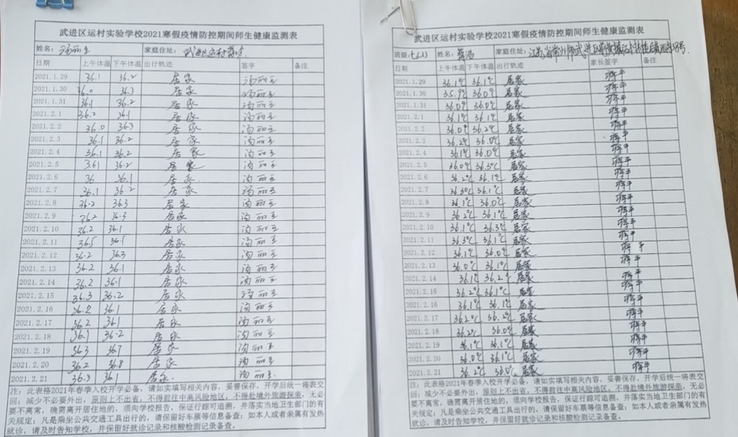 疫情防控,我们一刻也不松懈 ---运村实验学校开学疫情防控工作图解 为进一步做好新冠肺炎疫情防控期间学校安全防范工作,认真落实各项防控措施,对相关疫情做到早发现、早报告、早隔离、早治疗,有效遏制疫情传播、蔓延,保障学校卫生安全提升校园突发事件的处置能力,切实保障校园安全稳定,运村实验学校实施开学四个“一”制度,即“开学第一查、开学第一课、开学第一考、开学第一练”。 “开学第一查”即查“一码两表”。查收师生绿色健康码,师生寒假健康监测表和春季开学安全承诺书。