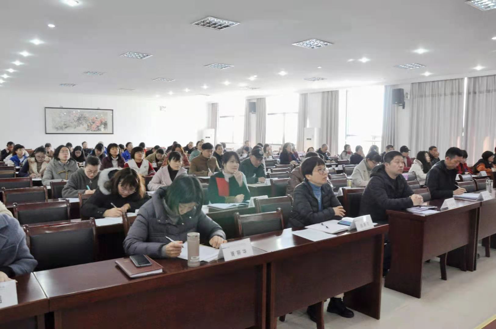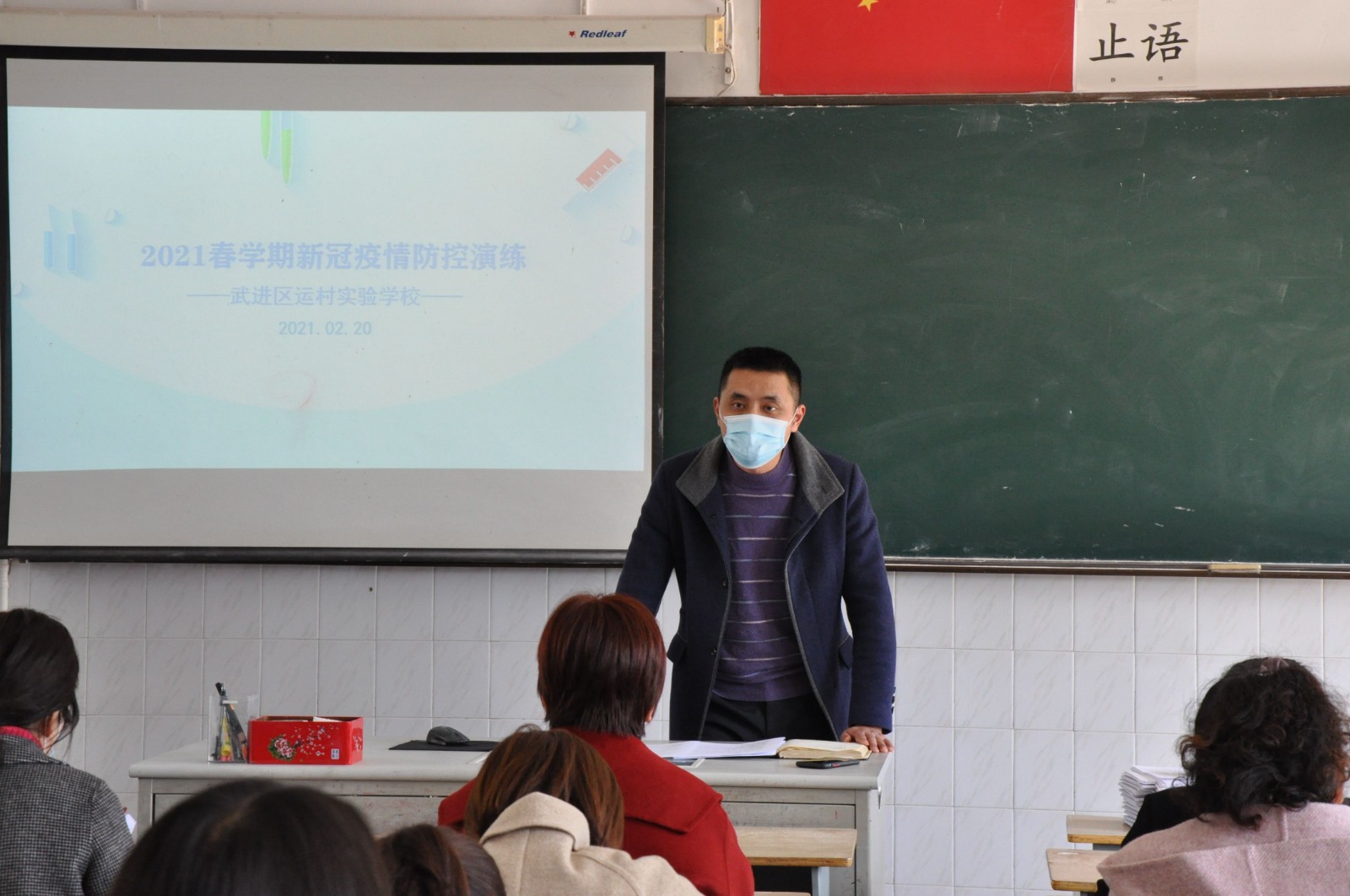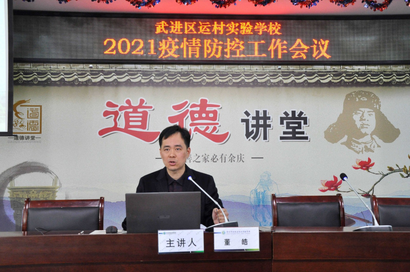 “开学第一课”,董皓校长在开学工作会议上对全体教师进行疫情防控专题培训。