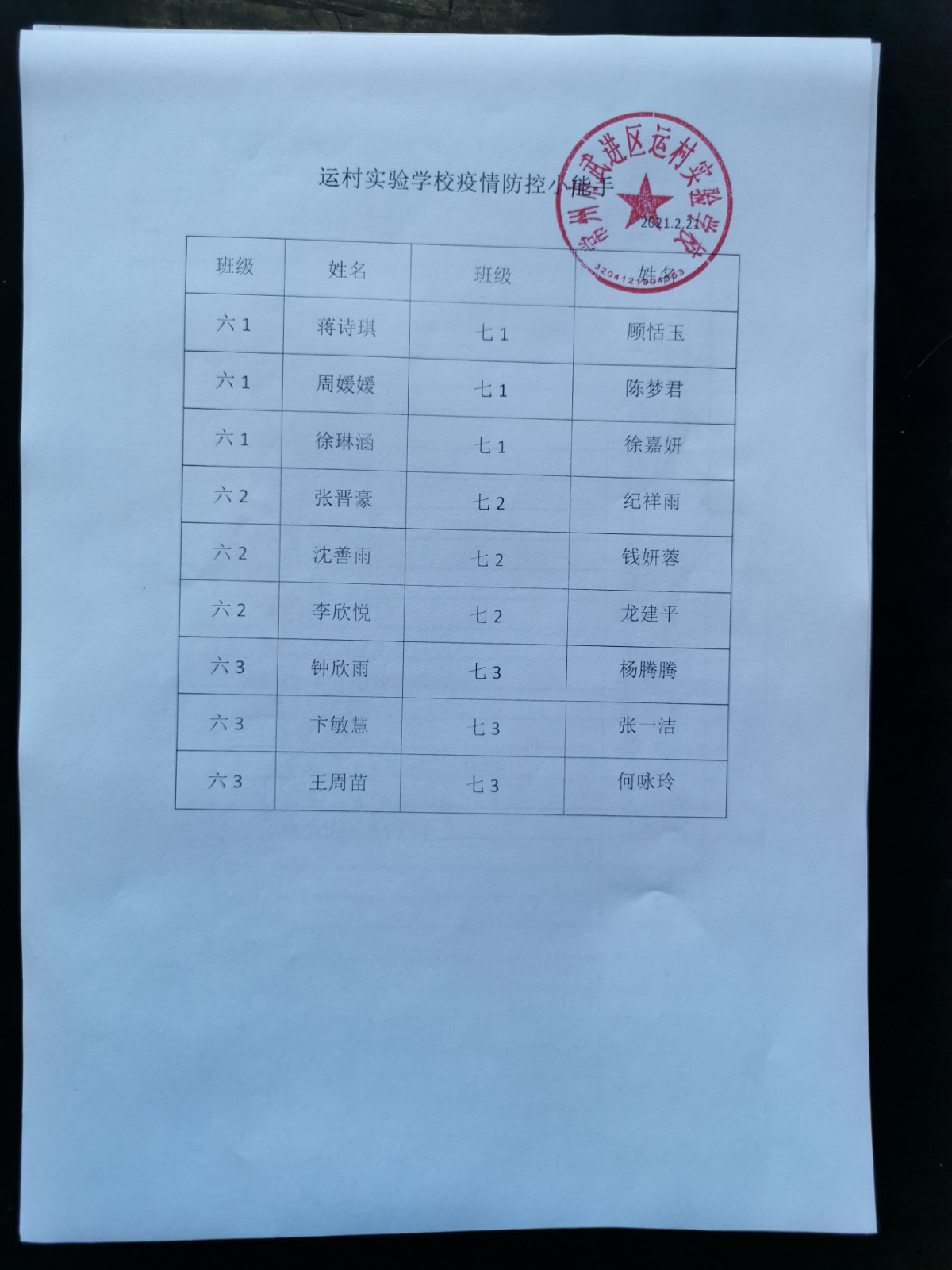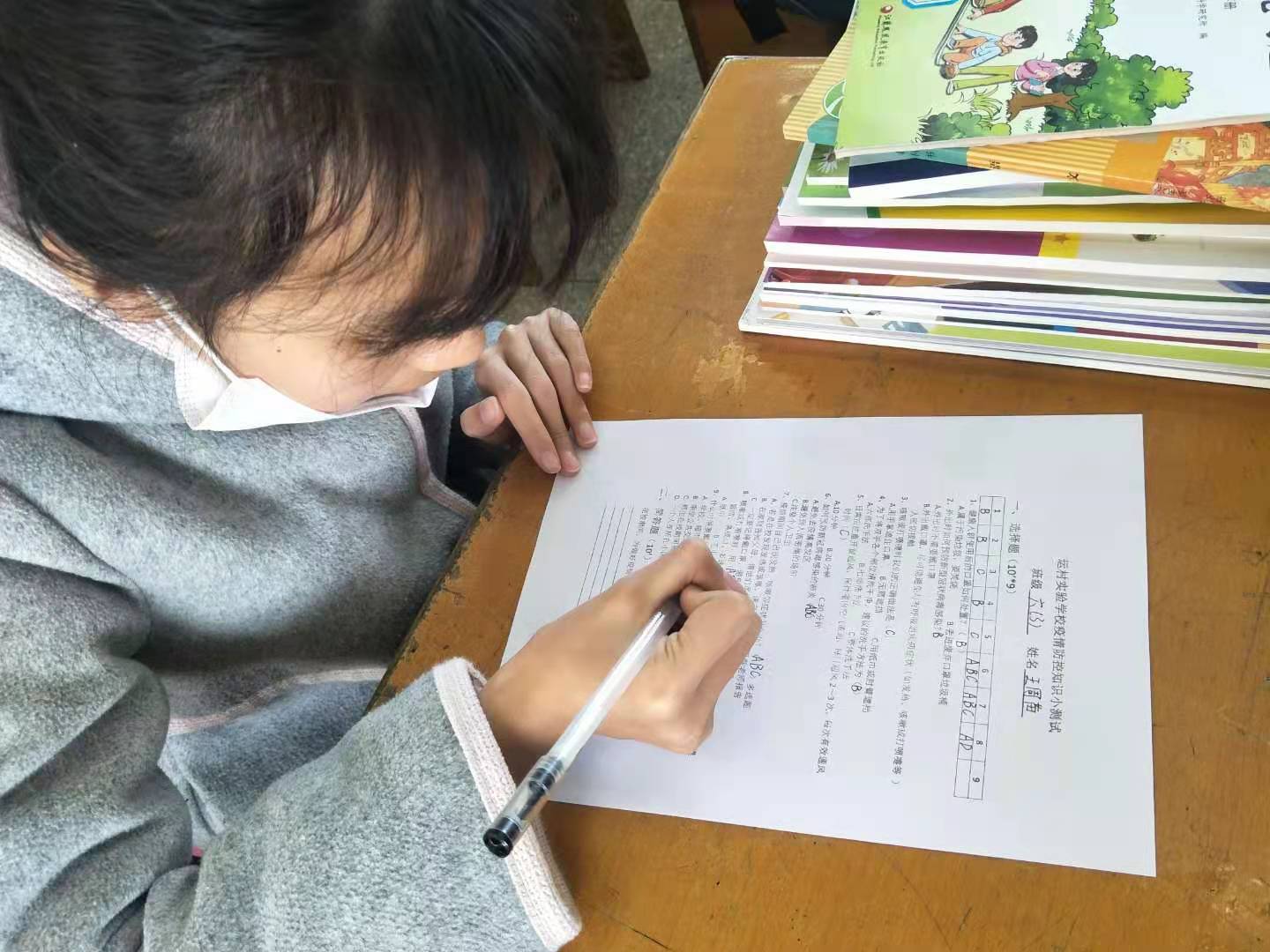 “开学第一考”,对六年级和七年级学生进行疫情防控知识小测试并评选出防疫知识答题小能手。