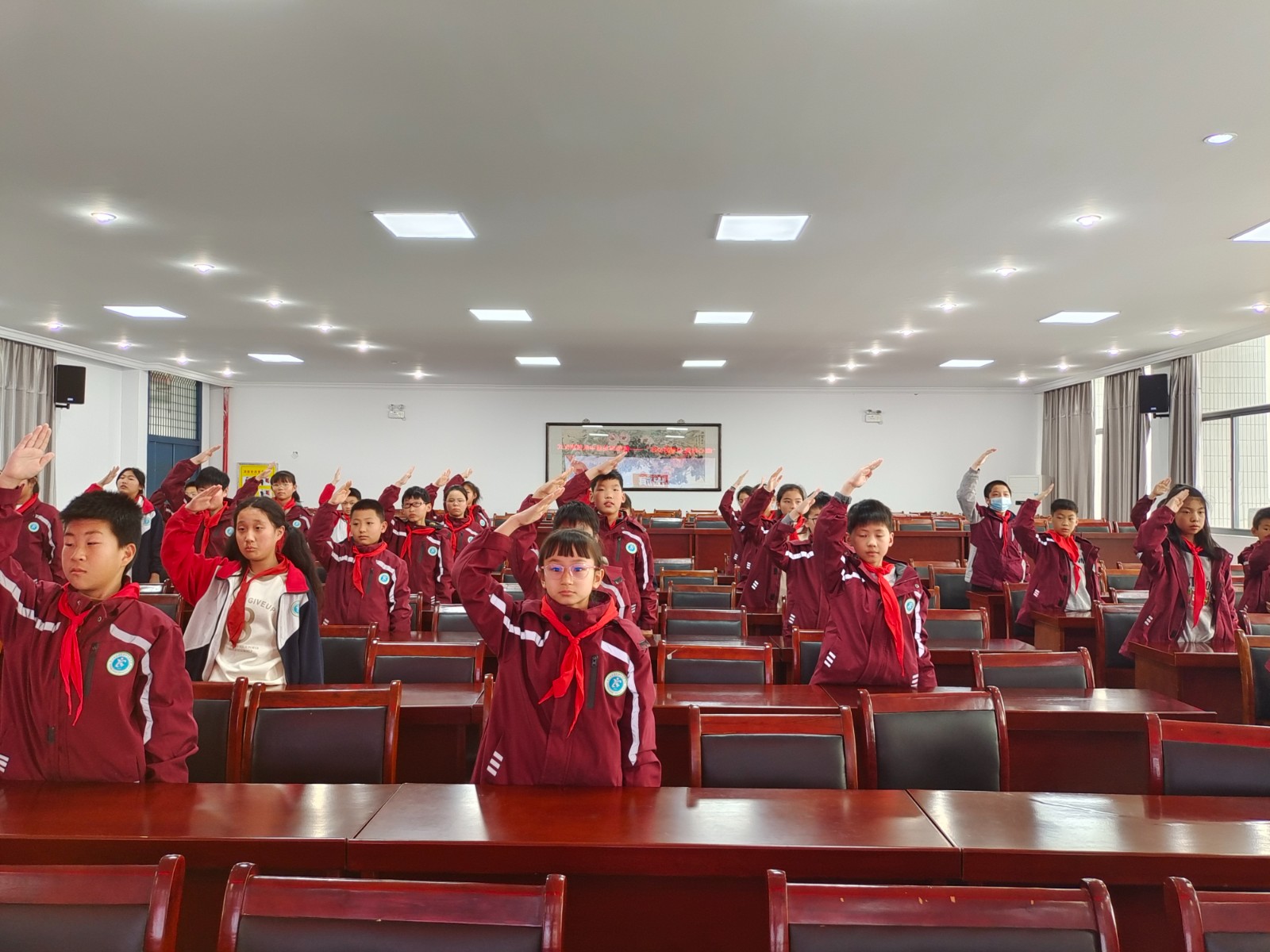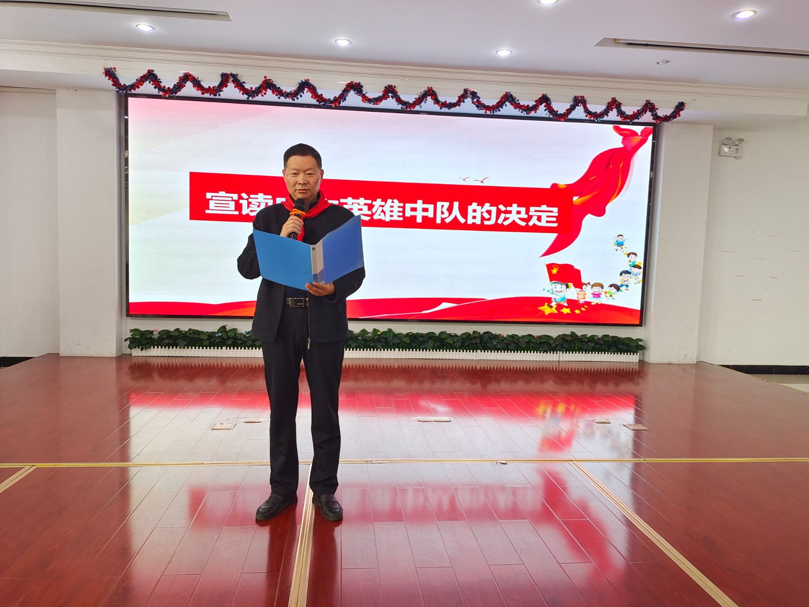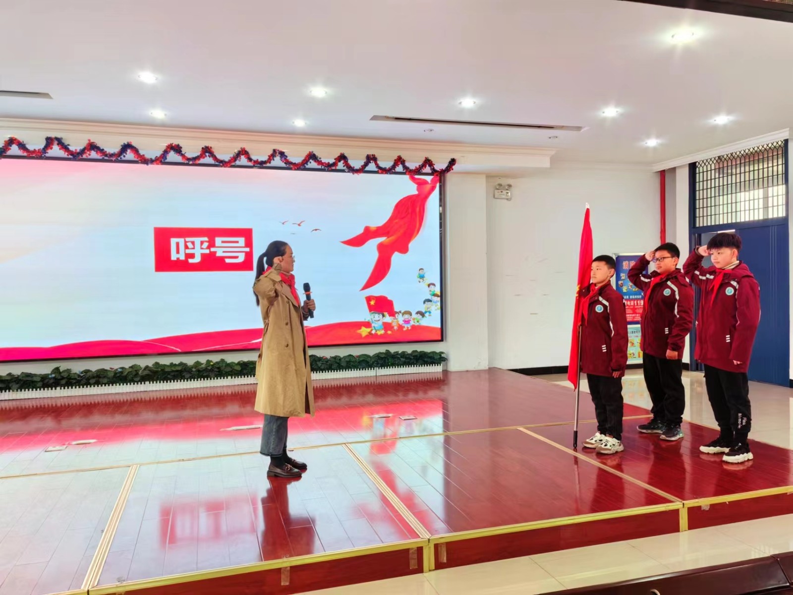 为引导广大少年儿童以英雄模范为榜样,继承革命传统,传承红色基因,贯彻落实习近平总书记对少年儿童“把红色基因一代代传下去”的嘱托要求,从小立志争做担当民族复兴大任的时代新人。3月2日下午,运村实验学校举行了“童心向党 争做好少年”戴荣坤英雄中队授旗仪式。 “出旗、敬礼!”活动伊始,伴随着庄严的出旗曲,全体队员用标准的队礼和坚定的眼神向鲜红的旗帜致以最崇高的敬意!随后,会场内响起中国少年先锋队队歌——《我们是共产主义接班人》,嘹亮的歌声唱出了每位少先队员的自豪和骄傲。 薛宏林副校长致辞,他希望队员们学习戴荣坤叔叔保家卫国、顽强拼搏的英雄事迹,继承他的坚定信仰、自强不息的优秀品质,汲取他崇高的精神力量,转化为我们锐意进取的实际行动,把爱国、爱人民、勇担当的民族精神深深扎根在心里,争做新时代好少年。同时,更希望五1中队的队员们弘扬红色基因,将英雄精神传遍五河校园,助推全校队员共同进步。 接着薛校长代表学校少工委,宣读成立英雄中队的决定。 在《红领巾飘起来》的乐曲中,德育处钱燕芬主任将英雄中队的队旗传递到五(1)中队中队长王梓轩手中。这不仅仅是一面鲜艳的“戴荣坤英雄中队”旗帜,更是一份向戴荣坤叔叔学习的承诺。接着,薛校长为中队辅导员郑慧老师颁发辅导员证书。在队旗与聘书的交互中,戴荣坤英雄精神伴随着挥舞的旗帜传递向整个会场,传递给在场的每一位少先队员,大家对英雄的敬意在心底流淌,向英雄学习的念头在悄悄生长。 辅导员郑慧老师带领全体队员在英雄中队队旗下宣誓,队员们坚定了从小学先锋长大做先锋的信念。向英雄学习、热爱祖国、勤奋好学、迎难而上,为成长为社会主义合格的建设者和接班人而努力奋斗。 最后,大队辅导员恽瑶老师带领队员们呼号。 种树者必培其根,育人者必养其心。今天,英雄的精神在队员的心中播撒下种子,明天,我们必将迎着时代的风雨,在英雄的鼓舞下展翅高飞,坚定自己的理想信念,做新时代的好少年!
