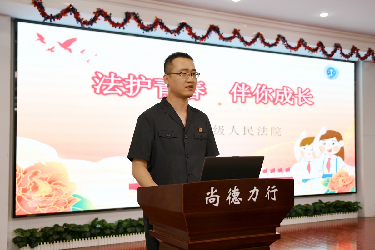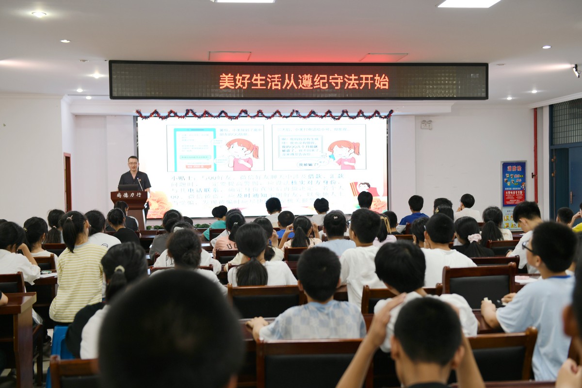 2023年5月是《中华人民共和国民法典》施行以来第三个“民法典宣传月”。为进一步加强民法典宣传,增强青少年的法治观念,推进校园的法治化进程,5月29日下午,我校邀请了常州市中级人民法院少年家事综合审判庭法官助理原凯为七、八年级全体学生进行了民法典宣讲。 本次讲座的主题是《保护青春,伴你成长》。会议由德育处主任薛亚萍主持。 讲座由三个部分组成。分别是:提高警觉,谨防诈骗;校园安全,谨记于心;提高意识,谨防溺水。常州市中级人民法院的原法官结合孩子们的学习生活实际,围绕网络诈骗、校园安全、谨防溺水等几方面内容,用真实案例讲述身边的故事,向孩子们宣传了网络骗局的类型及应负的法律责任,教育学生要把安全牢记心头,把握同学之间相处的行为尺度,暑期来临,更要谨防溺水,牢记“六不原则”。 学生们边听讲,边记录。不少学生更是感慨良多。 七(1)班王紫涵写道 :原法官幽默风趣的法律讲解,我不仅了解了什么是法律,还明白了,作为学生我们应该做什么,上网不轻信他人,要三思而后行,看到他人的危险举动要上前阻止,必要时可以报警。 八(3)班的卞敏慧表示:我们了解了不少网络诈骗的类型,还需要注意校园安全,避免受伤。除了在学校里,其他场合也要万分小心,注意安全。总之,安全第一,没了安全什么也没有了。 讲座最后,由两位法官向学生代表赠书。 愿法治之花永开校园,文明礼仪永记心头。