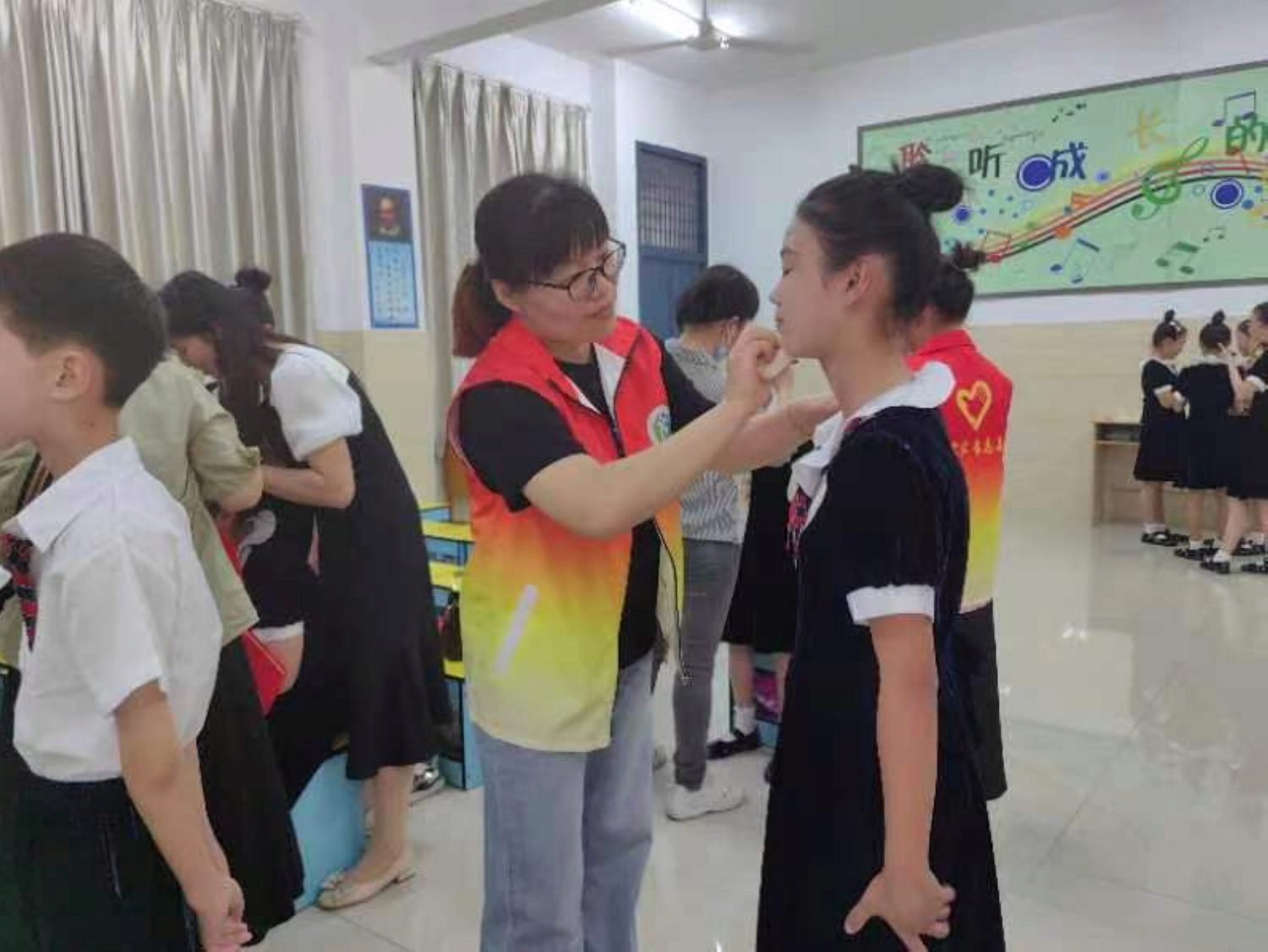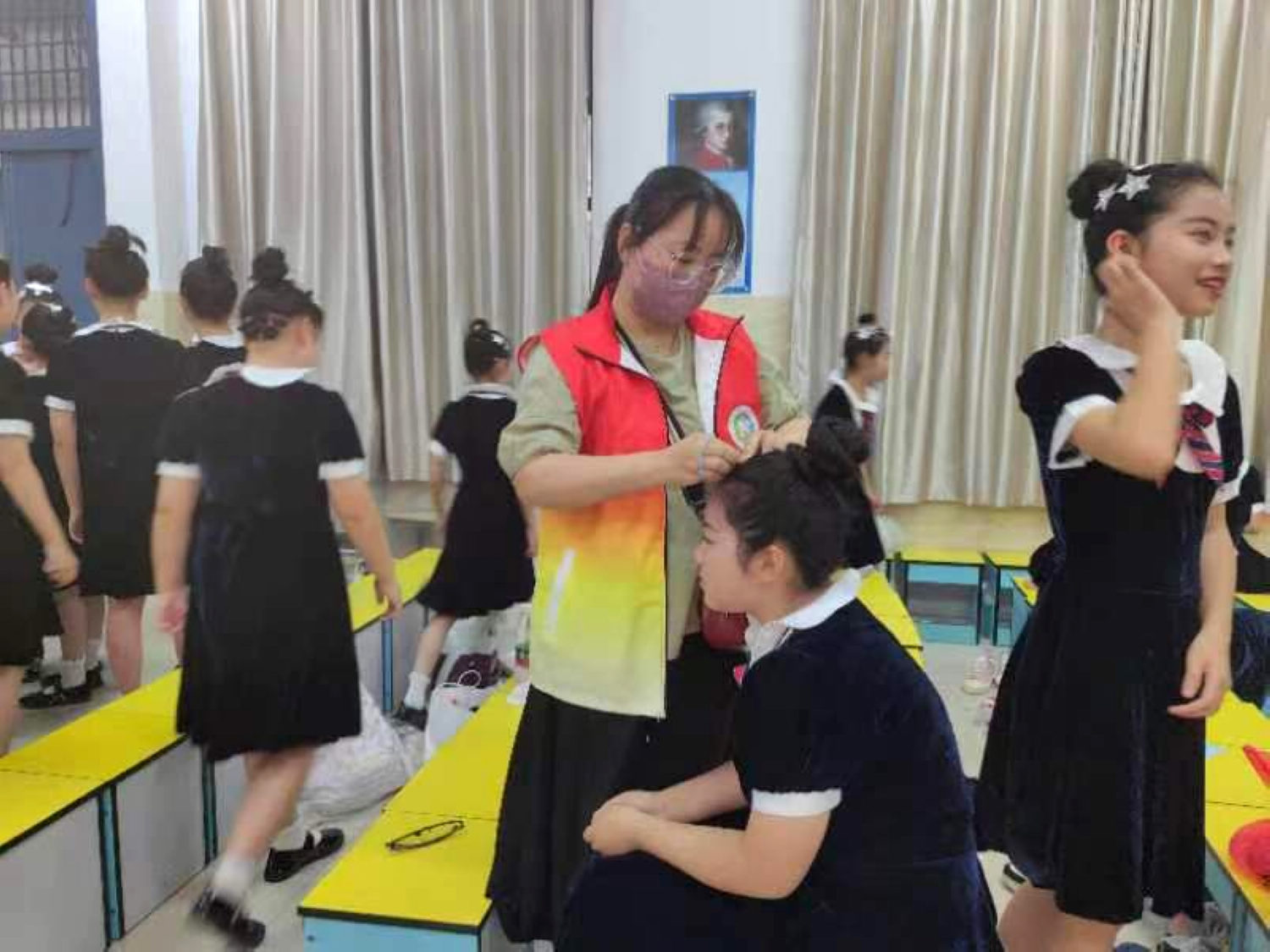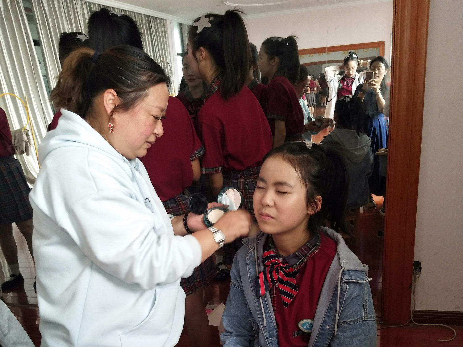成绩的取得离不开合唱队每一名队员的辛勤努力和学校领导的大力支持,更离不开家长的积极配合和支持。家长志愿者请假或放弃休息的时间来校为队员们化妆,为队员取得优异的保驾护航,你们是校园里一道美丽的“风景线”。