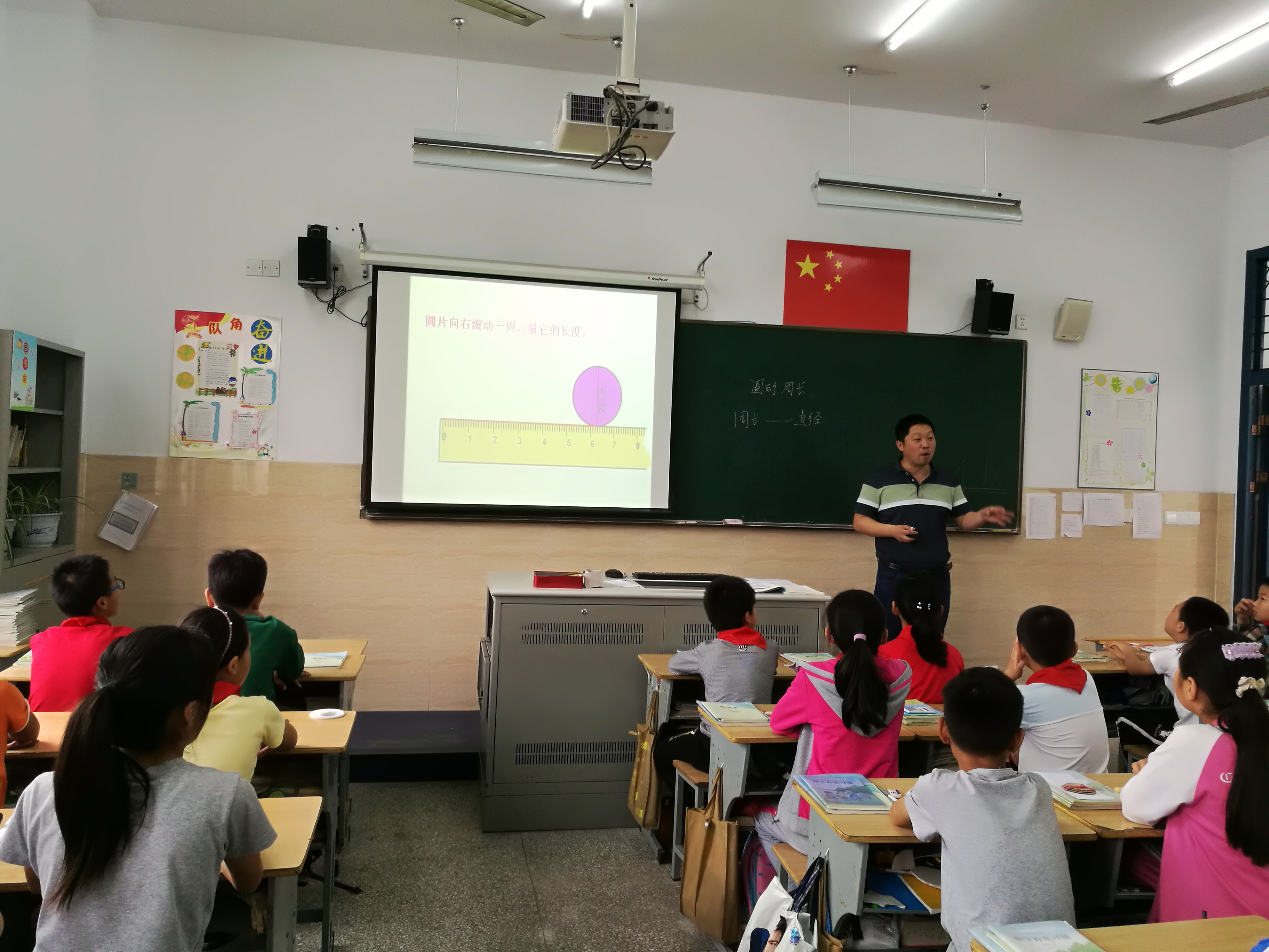6月7日,运村实验学校小数课题《培养小学生数学语言表达能力的策略研究》举行了高年级课堂教学研究活动。王晓伟老师执教了六年级数学课题研究课《圆的周长》。王老师在认真钻研教材的基础上,结合研究课题,精心设计教学活动,并作了充分的课堂准备工作。本节课知识点多、容量大,学生动手操作多、时间难控制,很难操作。但是王老师处理的很好,层次分明,重点突出,通过学生动手测量、小组合作,让学生亲身经历探寻周长与直径的比值规律的过程,从而归纳周长公式。充分发挥了学生的自主性和探究性,很好的突破本课的重点——让学生利用实验的手段,通过测量、计算、猜测圆的周长和直径的关系、验证猜测等过程,理解并掌握圆的周长计算方法。 课后,全体课题组成员针对这节课展开了热烈的研讨。大家一致认为,本节课紧紧围绕学生数学语言表达能力的培养,老师努力展现了有效的教学策略。但是小组合作应进一步加强指导,要让学生学会倾听、学会表达、学会组织、学会评价。教学中,教师尽可能地多放一点,能不说的尽量不说,不要急于呈现自己想要的结果,给学生充分的动手和思考交流的时间。