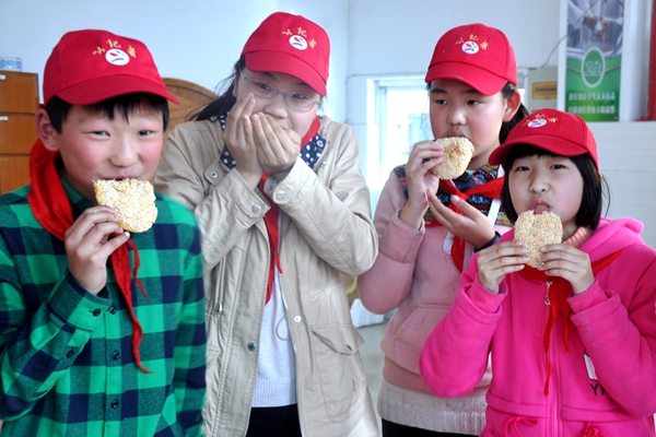 常州大麻糕始创于清咸丰年间,距今已经有150余年历史。2007年,常州大麻糕制作技艺被列为常州市首批非物质文化遗产名录。根据2018年武进区学校生命教育月活动的安排,3月30日下午,我校特地邀请了武进职教中心的严玉华、陈春华两位老师来校教小记者们学做常州名点大麻糕,弘扬中华文化,发扬本地特色,为传承非遗出力。 为了本次活动的顺利开展,两位老师做了精心的准备。严玉华老师先用朴实的、通俗易懂的语言向小记者们介绍了常州大麻糕的历史,让小记者们了解到常州大麻糕是一种具有独特口感和风味的大烧饼,也是常州人最喜爱吃的家常传统食品。制作时,需选用精白面粉、优质芝麻、白糖、精盐等原料,经过和面、搅拌、揉搓、包馅、成形、烘烤等多道工序,精制而成。有咸、甜两种风味,供购者选择。接着,两位老师耐心、细致地教孩子们亲手制作大麻糕。小记者们洗净双手,按老师所说的要求和面、搅拌、揉搓、包馅、成形,虽然有的做得不是特别圆整、漂亮,但是却忙得不亦乐乎。特别是当烘烤好的大麻糕出炉了,小记者们看着香味浓郁扑鼻,色泽黄润而不焦的大麻糕,都迫不及待地品尝起来。咸甜适度而不腻,香酥可口而不脆,色、香、味俱佳,孩子们个个吃得津津有味。 中华的文化渊源流长,经过本次的麻糕制作活动,我们每个小记者都有十分深刻的体会与思考。这正是我们的目的:让每一个参与的孩子有所思、有所学,为保护常州大麻糕这一非物质文化遗产而做出自己的努力。